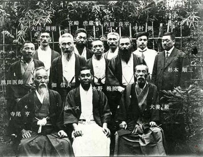 Bose seated in the middle and his influential supporters in 1916. Seated on his right is Inukai Tsuyoshi, prime minister from 1931 to 1932.
