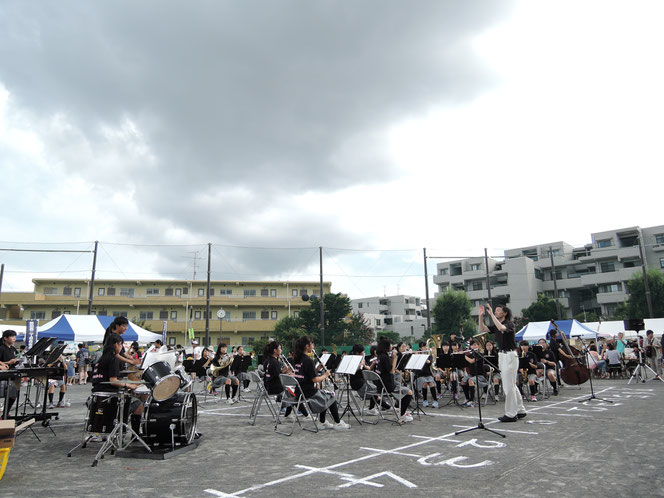 A summer festival in my neighborhood, northern Yokohama on August 21, 2016. A local secondary high school brass band played popular numbers one after another.